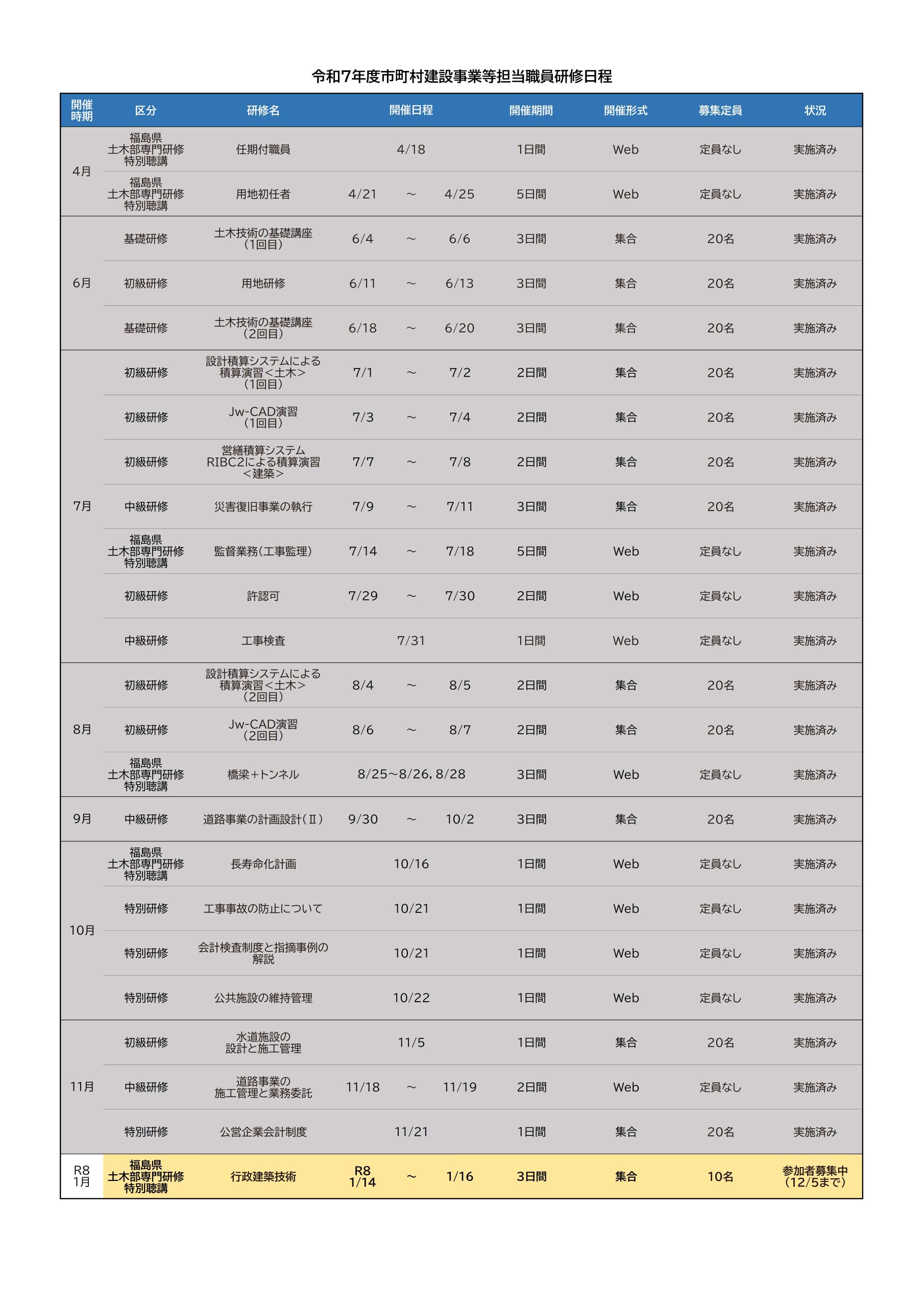 • 行政建築技術                  (令和8年1月14日~16日)
